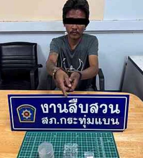 จับกุมตัวได้ที่ ภายในห้องเช่า เลขที่ ๖๑/๔๙ ม.๑๑ ต.อ้อมน้อย อ.กระทุ่มแบบ จ.สมุทรสาคร