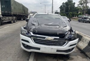 วันที่ 28 ต.ค. 2567 เวลาประมาณ 10.15 น.พ.ต.ต. โยธิน เชื้อบุญมี สว.(สอบสวน) สภ.กระทุ่มแบน จว. สมุทรสาคร ได้รับแจ้งเหตุรถยนต์เฉี่ยวชนบริเวณเชิงสะพานข้ามแยกถนนพุทธทธมณฑลสาย 5(ขาลง) ฝั่งมุ่งหน้าไปทางนครปฐม ถนนเพชรเกษม มีผู้ได้รับบาดเจ็บ ๖ ราย คู่กรณีประกอบด้วย1. รถยนต์กระบะ ยี่ห้อเชฟโรเลต ทะเบียน 5กษ-7457 กรุงเทพฯ มีนายปฏิภาณ บุญมาสุข อายุ 27 ปี ที่อยู่63/1 หมู่ 6 ต.หัวไผ่ อ.เมืองสิงห์บุรี จ.สิงห์บุรี โทร. 080-6148340 เป็นผู้ขับขี่ได้รับบาดเจ็บ 2. รถยนต์บรรทุกส่วนบุคคล ลักษณะรถเฉพาะกิจ(ขยะมูลฝอย) ยี่ห้ออีชูซุ ทะเบียน บฉ-2957 สมุทรสาครซึ่งเป็นรถ เก็บขยะมูลฝอยของเทศบาลนครอ้อมน้อย มีนายสาธิต มีจันเพชร อายุ 37 ปี ที่อยู่ 7 หมู่ 12 ต.บางเลน อ.บางเลน จ.นครปฐม โทร.095-9363799 เป็นผู้ขับขี่รถและมีพนักงานกวาดถนนของเทศบาลนครอ้อมน้อย5คนซึ่งกำลังทำงานกวาดถนนอยู่บริเวณใกล้เคียงรถ และได้รับบาดเจ็บจากอุบัติเหตุดังกล่าวเข้ารับการตรวจรักษาที่รพ.วิชัยเวชฯ (อ้อมน้อย)