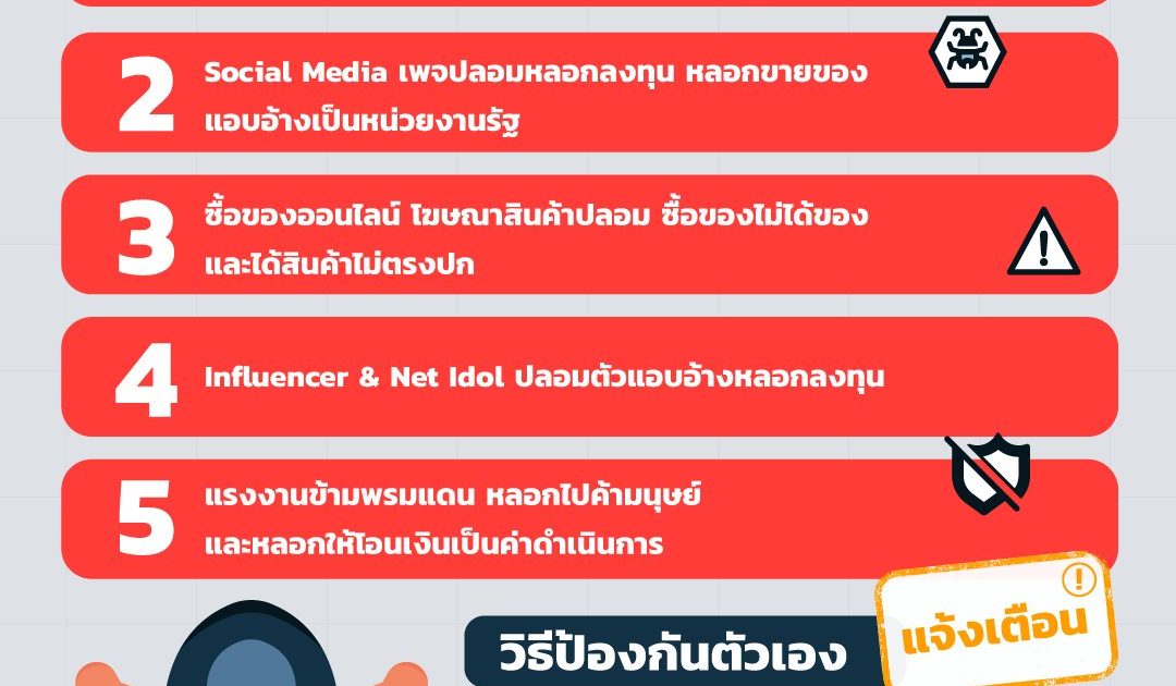 5. แรงงานข้ามพรมแดน หลอกไปค้ามนุษย์ หลอกให้โอนเงินเป็นค่าดำเนินการ หลอกไปเป็นแก๊งคอลเซ็นเตอร์ หรือบัญชีม้า