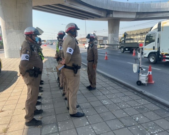 พ.ต.อ.สร ซื่อตรงพานิช ผกก.สภ.กระทุ่มแบน ได้สั่งการให้พ.ต.ต.อาคม ตาใคร้ สว.อก.(หน.จร)สภ.กระทุ่มแบนร.ต.อ.ณัฐพล กิมเหล็ง รองสว.จร.สภ.กระทุ่มแบนพร้อมกำลัง จราจร จำนวน 12 นาย ตั้งจุดตรวจกวดขันวินัยจราจร ป้องกันอาชญากรรมและบังคับใช้กฎหมายจราจร รณรงค์ประชาสัมพันธ์ให้ประชาชนปฏิบัติตามกฎหมายจราจรโดยเคร่งครัดเพื่อป้องกันและลดอุบัติเหตุทางถนนบริเวณเส้นทางหลักและเส้นทางรองในพื้นที่